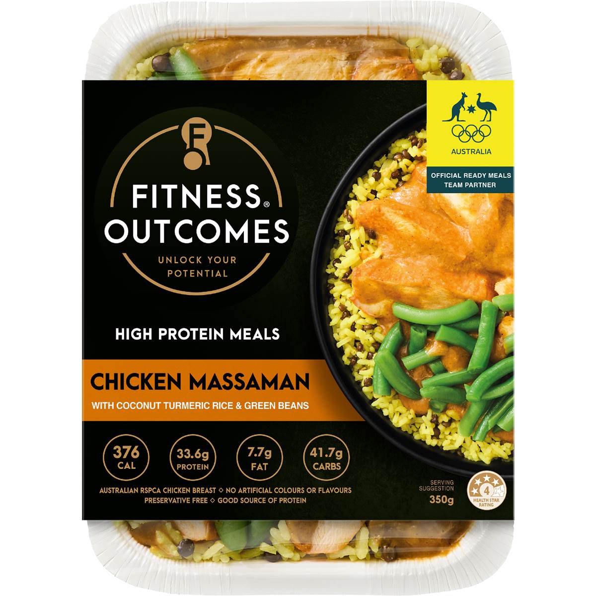 Fitness Outcomes Chicken Massaman With Coconut Turmeric Rice & Green Beans 350g
