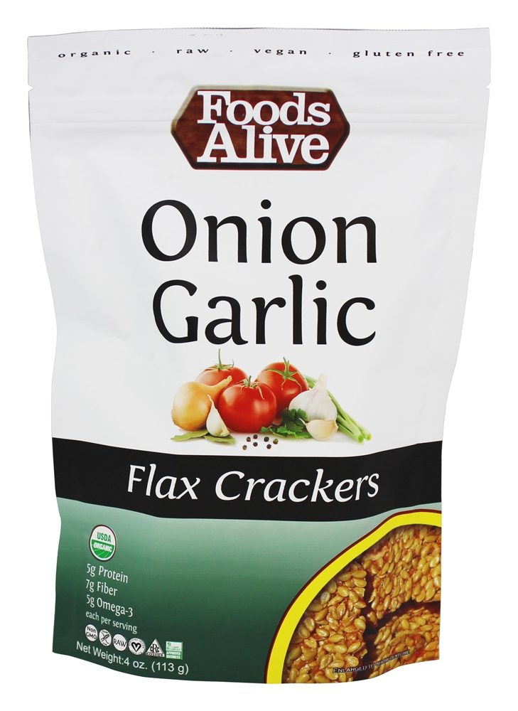 Foods Alive Organic Flax Crackers Onion Garlic -- 4 oz