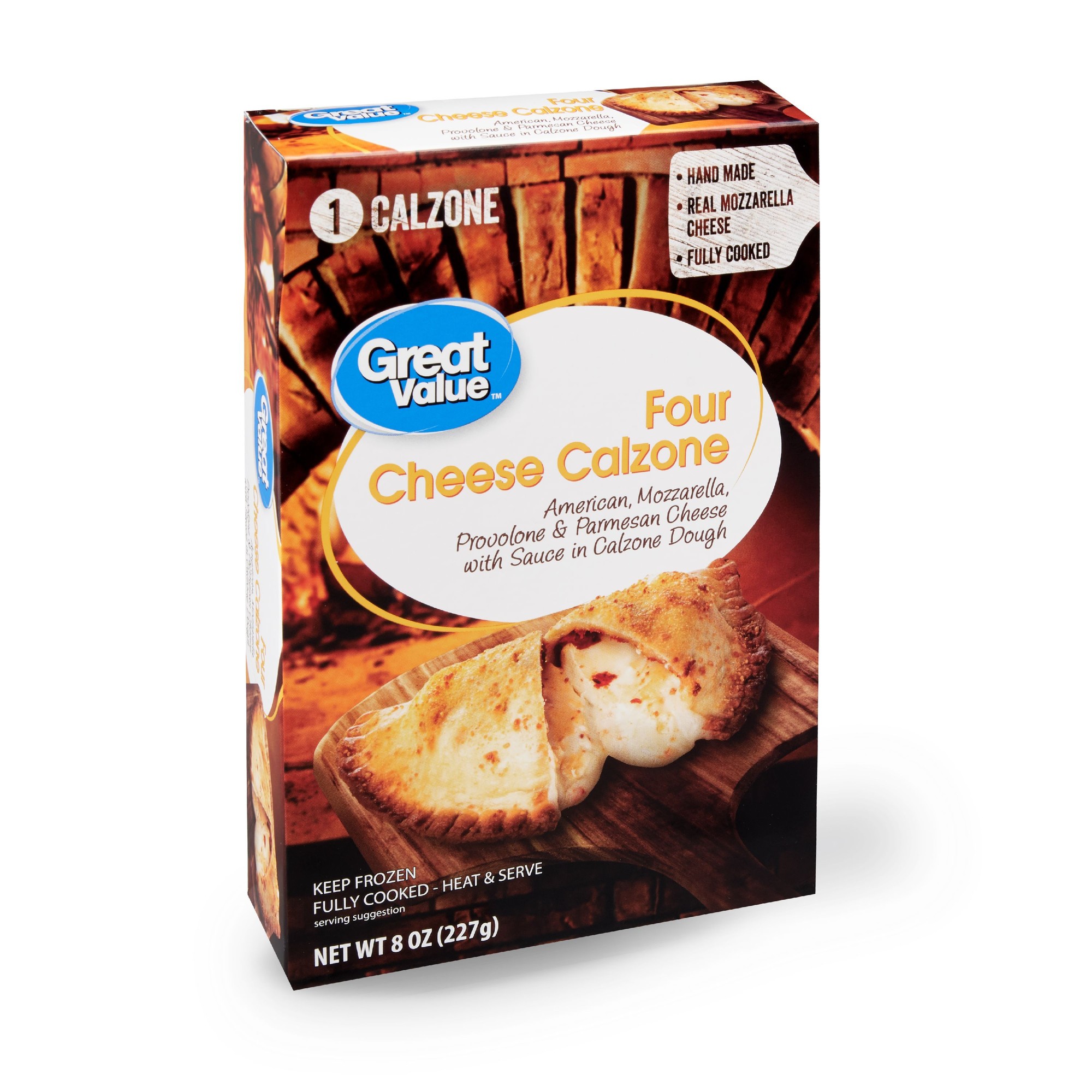 FOUR CHEESE CALZONE AMERICAN, MOZZARELLA, PROVOLONE & PARMESAN CHEESE WITH SAUCE IN CALZONE DOUGH, FOUR CHEESE CALZONE