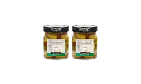 FRAMORE, Bella di Cerignola green olives stuffed with sun-dried tomato 10.2 Oz (2X)- Imported from Italy
