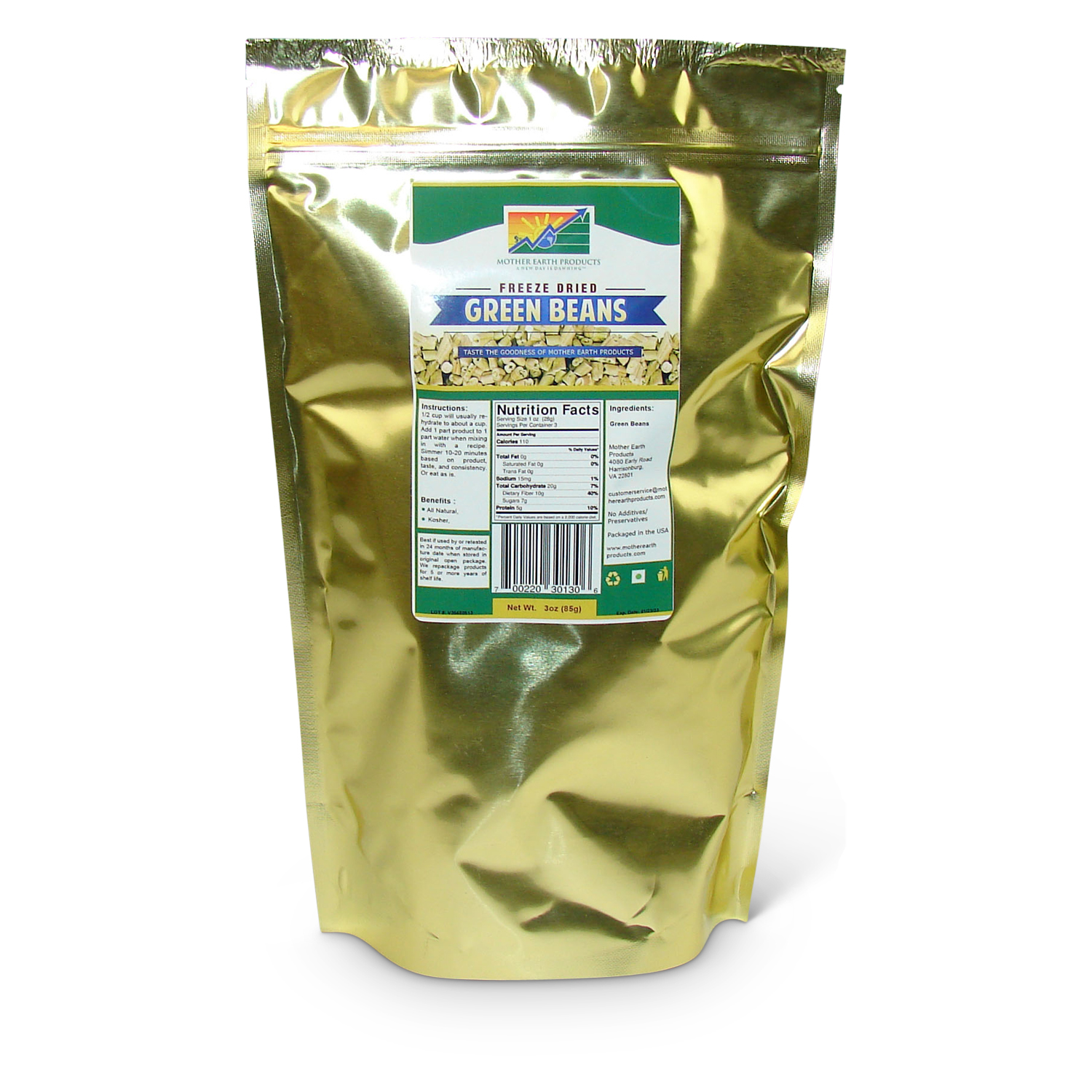 Freeze Dried Green Beans, 1 full quart Mylar Bag