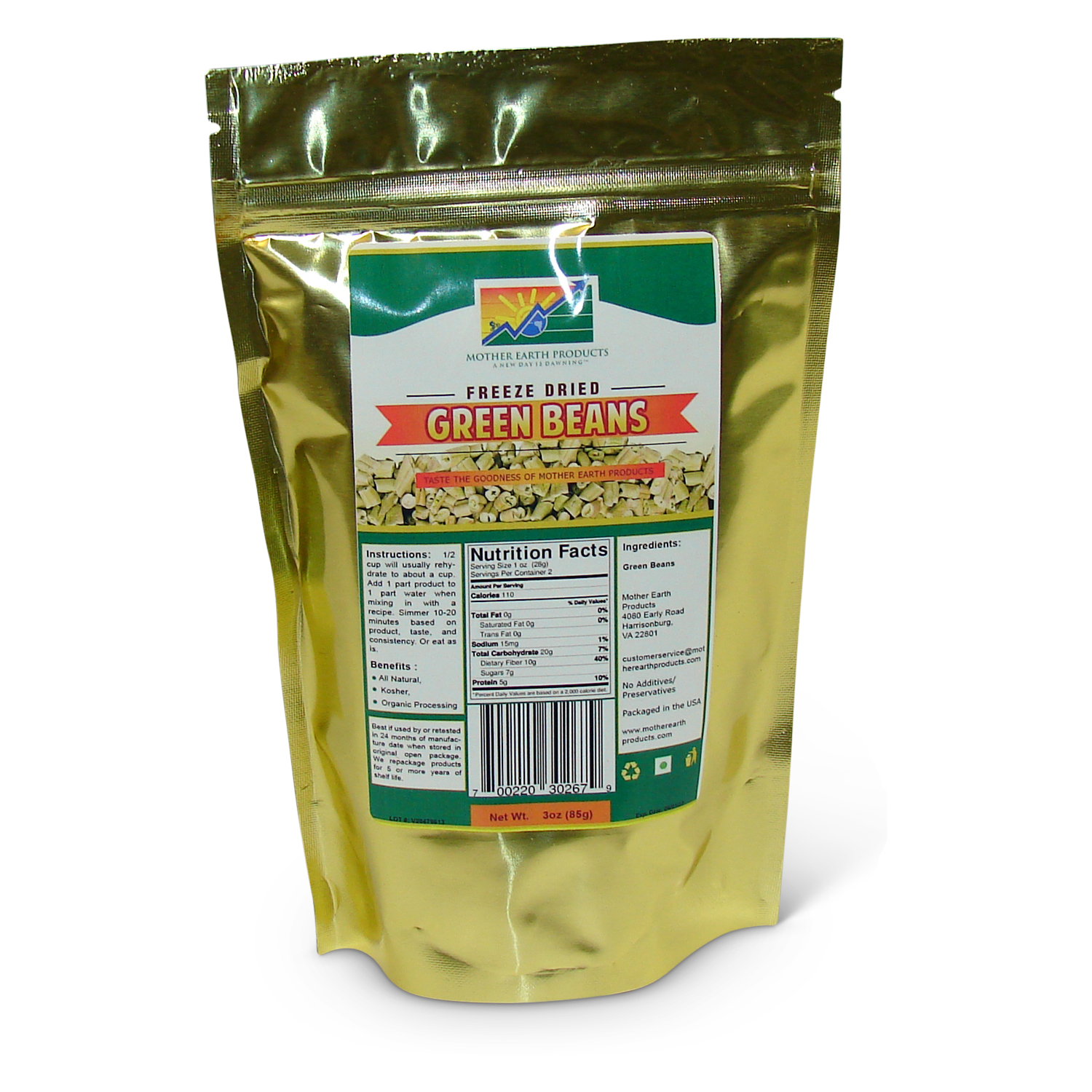 Freeze Dried Green Beans, 2 full cup Mylar Bag
