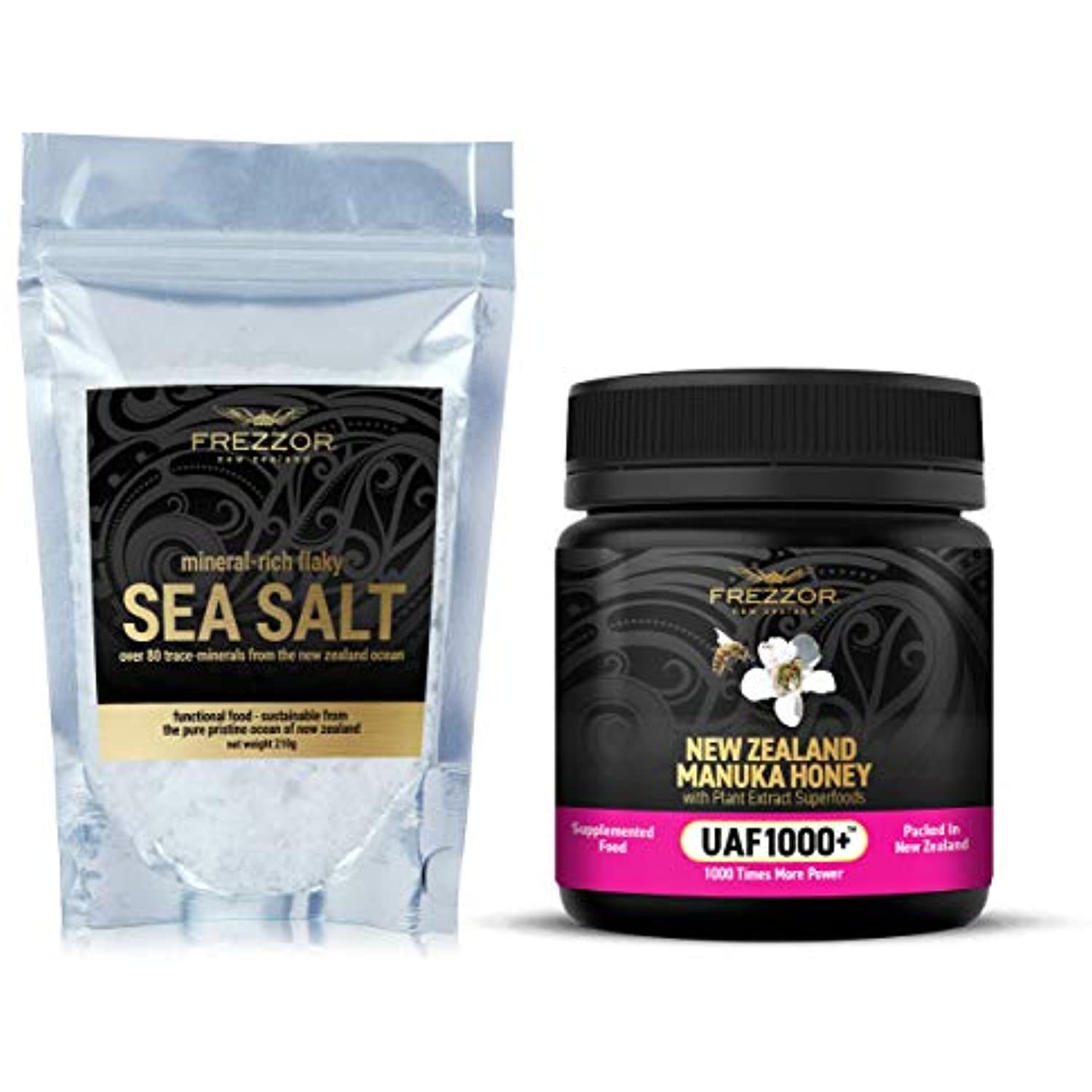 FREZZOR Mineral-Rich Flaky Salt Combo-Pack with FREZZOR Manuka Honey UAF1000+, Made in New Zealand, 100% All-Natural