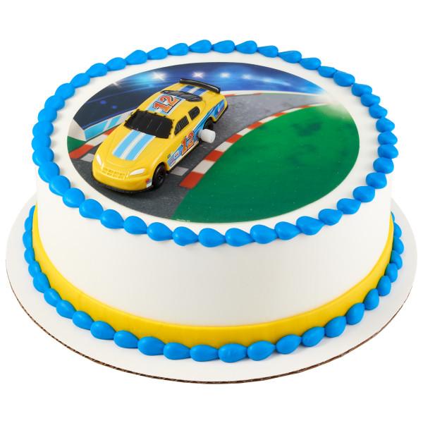 Friday Night Speedway DecoSet with Round Edible Cake Topper Image Background