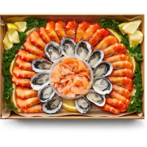 <div>For More detailed Nutritional Information and Allergen information please click on the individual ingredient<br><br><a href="https://www.woolworths.com.au/shop/productdetails/96057/">Fresh Dozen Australian Pacific Oysters</a></div><div><a href="https://www.woolworths.com.au/shop/productdetails/345350/">Ocean Blue Salmon Smoked</a></div><div><a href="https://www.woolworths.com.au/shop/productdetails/66384/">Medium Aussie Tiger Prawns</a></div><div><a href="https://www.woolworths.com.au/shop/productdetails/122788/">2 Loose Lemon</a></div><div><a href="https://www.woolworths.com.au/shop/productdetails/144784/">½ Parsley Bunch</a><br><br>Prawns may be subjected to change depending on your store ranging with the following alternatives:</div><div><br><a href="https://www.woolworths.com.au/shop/productdetails/638179/">Large Ocean Caught Tiger Prawns</a></div>