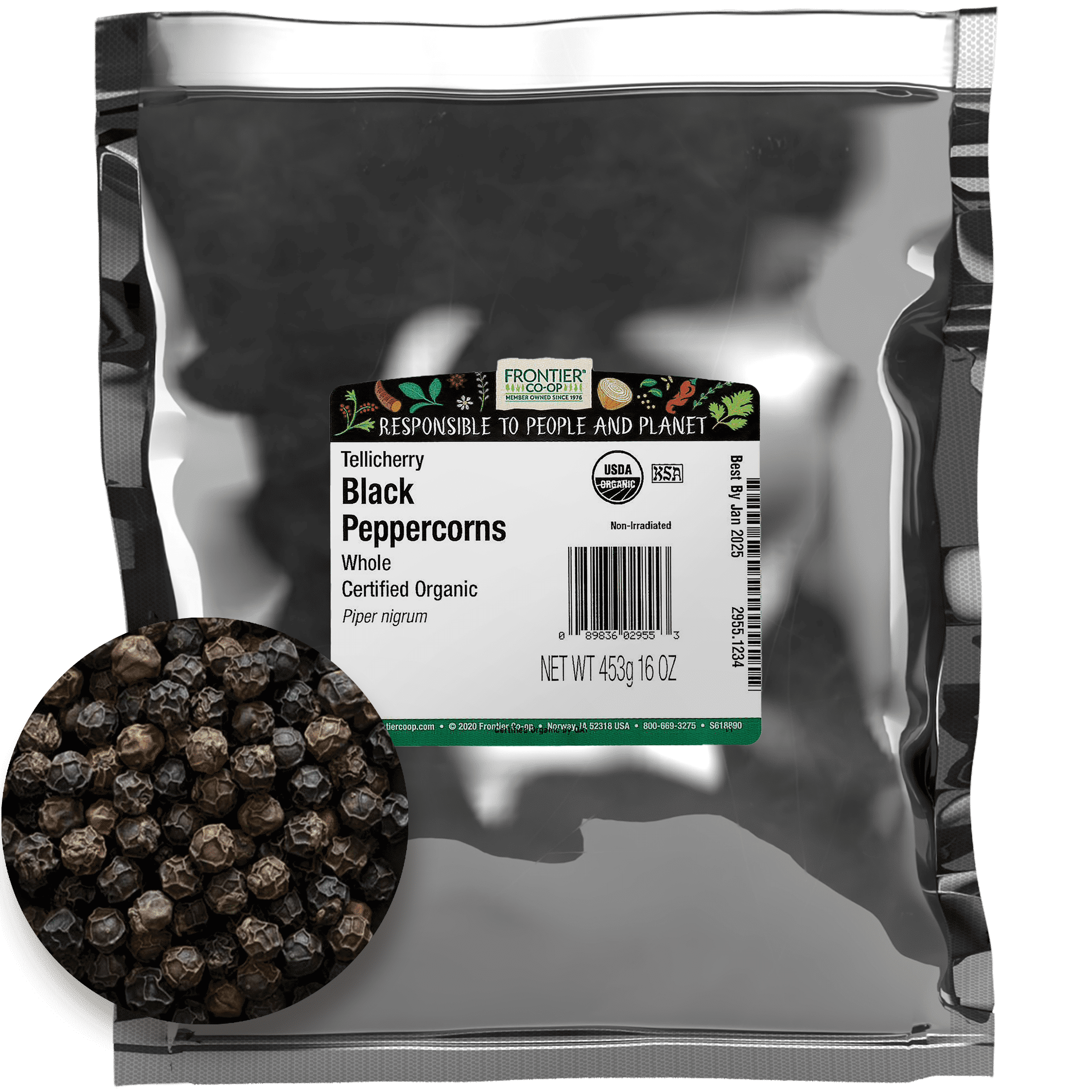 Frontier Natural Products Organic Whole Black Peppercorns Tellicherry 16 oz 453 g