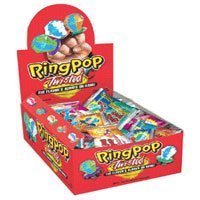 Ingredients: All flavors contain: Sugar, Corn Syrup, Lactic Acid Additionally: Blue Raspberry: Artificial Flavor, Blue 1 Strawberry: Artificial Flavor, Red 3, Blue 1 Watermelon: Artificial Flavor, Turmeric Berry Blast: Natural & Artificial Flavors, Titanium Dioxide (Color), Blue 1 Lake Green Mystery: Natural and Artificial Flavor Ring Pop Sours Ingredients: Sour Cherry: Sugar, Corn Syrup, Lactic Acid, Artificial Flavors, Red 40