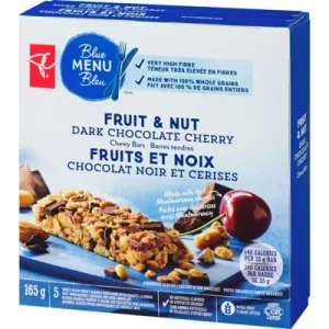 WHOLE GRAIN GRANOLA (ROLLED OATS, WHOLE GRAIN BLEND (RYE FLAKES, TRITICALE FLAKES, BARLEY FLAKES, WHITE WHEAT FLAKES, PURPLE WHEAT FLAKES, KHORASAN WHEAT FLAKES, SPELT FLAKES, QUINOA FLAKES, BUCKWHEAT GRITS), SUGAR, HIGH OLEIC SUNFLOWER OIL, FANCY MOLASSES, BAKING SODA, SOY LECITHIN), FRUCTOOLIGOSACCHARIDES, ROASTED PEANUTS, CRISP RICE (RICE FLOUR, SUGAR, CALCIUM CARBONATE, SALT), ALMONDS, DEHYDRATED CHERRIES (TART MONTMORENCY CHERRIES, SUGAR, RICE FLOUR, SUNFLOWER OIL), GLUCOSE, DARK CHOCOLATE CHUNKS (UNSWEETENED CHOCOLATE, SUGAR, DEXTROSE, SOY LECITHIN, VANILLA EXTRACT), SOYBEANS (SOYBEANS, SUNFLOWER OIL), CHICORY ROOT INULIN, GLYCERINE, HIGH OLEIC CANOLA OIL (CONTAINS ROSEMARY EXTRACT AND ASCORBIC ACID), CORN MALTODEXTRIN, SOY LECITHIN, NATURAL FLAVOUR, CITRIC ACID.