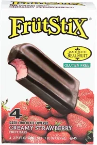Fruit Bar Milk Mix (Milk, Condensed Skim Milk, Sugar, Cream, Vanilla Extract), Strawberries, Strawberry Puree, Sugar, Guar Gum, Xanthan Gum, Colored With Red Beet Juice, Chocolate And Coconut Oil Coating: Semisweet Chocolate (Sugar, Chocolate Liquor Processed With Potassium Carbonate, Cocoa Butter), Coconut Oil, Soy Lecithin (An Emulsifier), Pure Vanilla