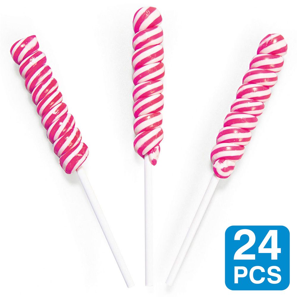 Fun Express - Hot Pink Mini Twisty Pops for Wedding - Edibles - Sucker & Pop - Swirl & Twist Pops - Wedding - 24 Pieces