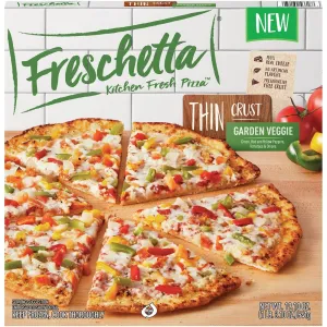 GARDEN VEGGIE GREEN, RED AND YELLOW PEPPERS, TOMATOES & ONIONS THIN CRUST PIZZA, GARDEN VEGGIE