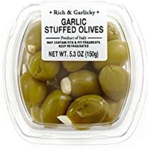 GREEN OLIVES (PITTED), GARLIC, SUNFLOWER OIL, SALT.