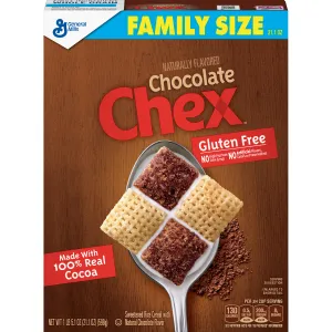 General Mills Chex Breakfast Cereal Chocolate Gluten Free Family Size 211 oz is a delicious and versatile cereal made by General Mills. It is crafted from whole grain cereal, ensuring a nutritious start to your day. Being gluten-free, it caters to those with dietary restrictions. The cereal consists of crunchy lattice squares that can be enjoyed at breakfast or used in various recipes like Chex Muddy Buddies and trail mixes. People appreciate its seamless transition from breakfast to snack or dessert. With its large family-size packaging of 211 oz, this cereal offers great value.