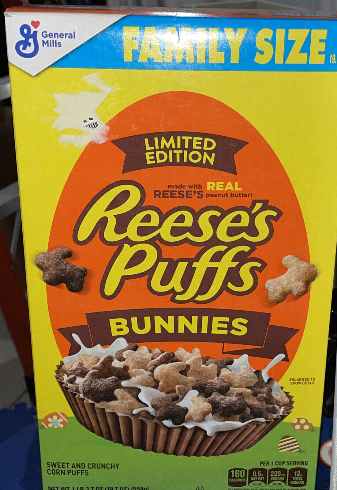 General Mills Family Size Reese's Puffs Bunnies Sweet and Crunchy Corn Puffs