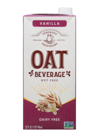 Oat Beverage (filtered Water, Oats), Contains 2% Or Less Of: Hi Oleic Sunflower Oil, Dipotassium Phospate, Tricalcium Phosphate, Natural Flavor, Calcium Carbonate, Sea Salt, Gellan Gum, Vitamin A Palmitate, Ergocalciferol (vitamin D2), Riboflavin, Vitamin B12. May Contain Wheat.