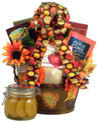 They Will Fall For This Fantastic Gift Basket That Features A Host Of Yummy Treats, Drink Mixes And A Wonderful, Over-sized, Apple Cinnamon Scented, Jar Candle!this Fall Gift Features A Unique Fall Basket Filled With The Scents And Flavors Of The Season:apple Cinnamon Scented Gel Candle In 4,5 Country Canning Jarvanilla Cream Layered Artesian Wafer Cookiescaramel Apple Dip Mixcaramel Apple Molded Chocolatescinnamon Pecanspecan Cookie Strawssmoked Almondsenglish Toffee Caramelsautumn Harvest Spiced Apple Cider Drink Mixfarmers Popcornapple Cinnamon Cookies