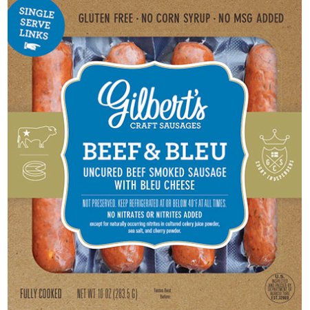 GILBERT'S, UNCURED BEEF SMOKED SAUSAGE WITH BLEU CHEESE, BEEF & BLEU, BEEF & BLEU