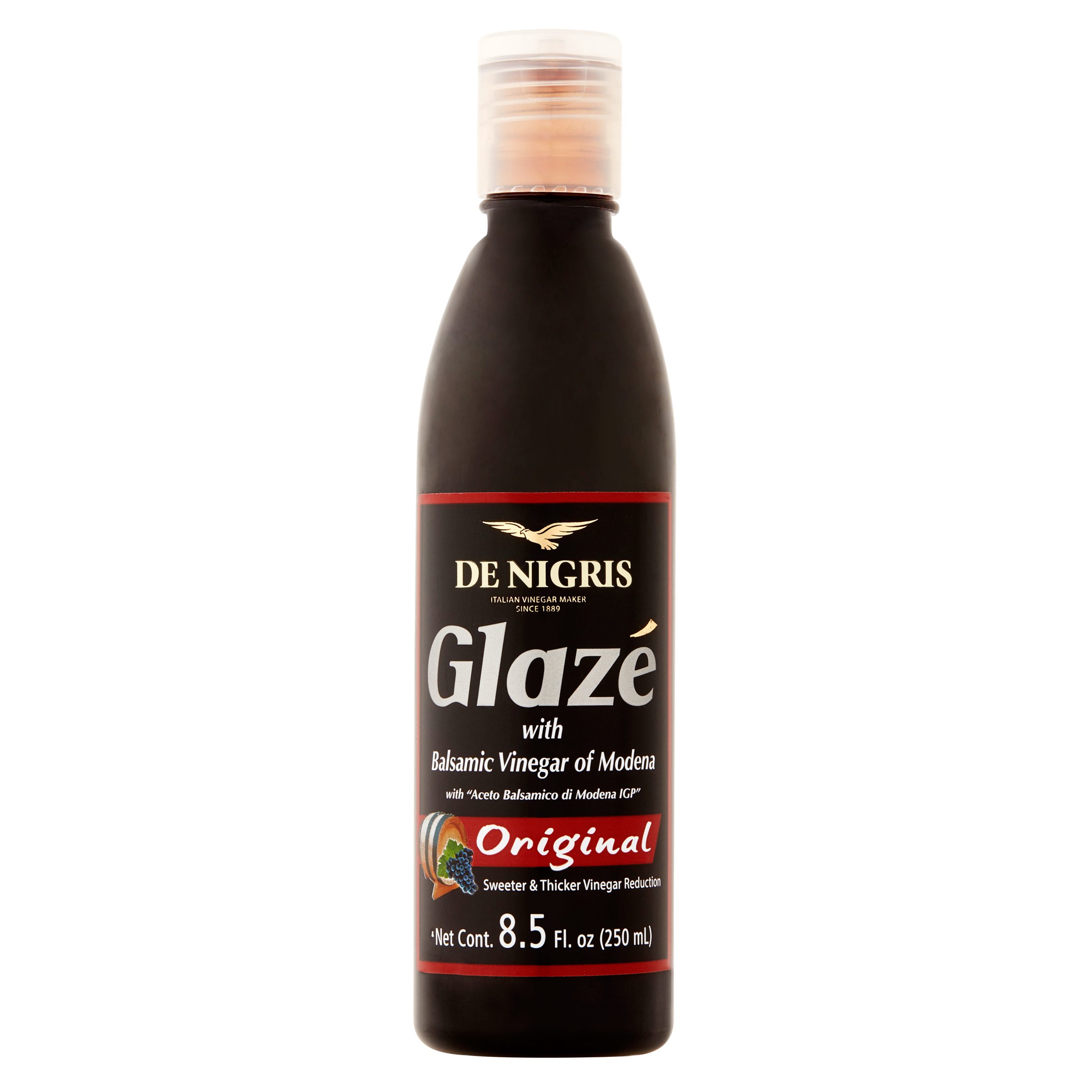 The glaze delivers a glossy, syrupy texture with a balanced sweet-tart flavor, commonly used for drizzling over salads, roasted vegetables, grilled meats, cheeses, and desserts. Customers note its easy-pour viscosity and pronounced sweetness, reporting it enhances presentation; occasional reviews mention excessive thickness or overly sweet taste and bottle dispensing issues.
