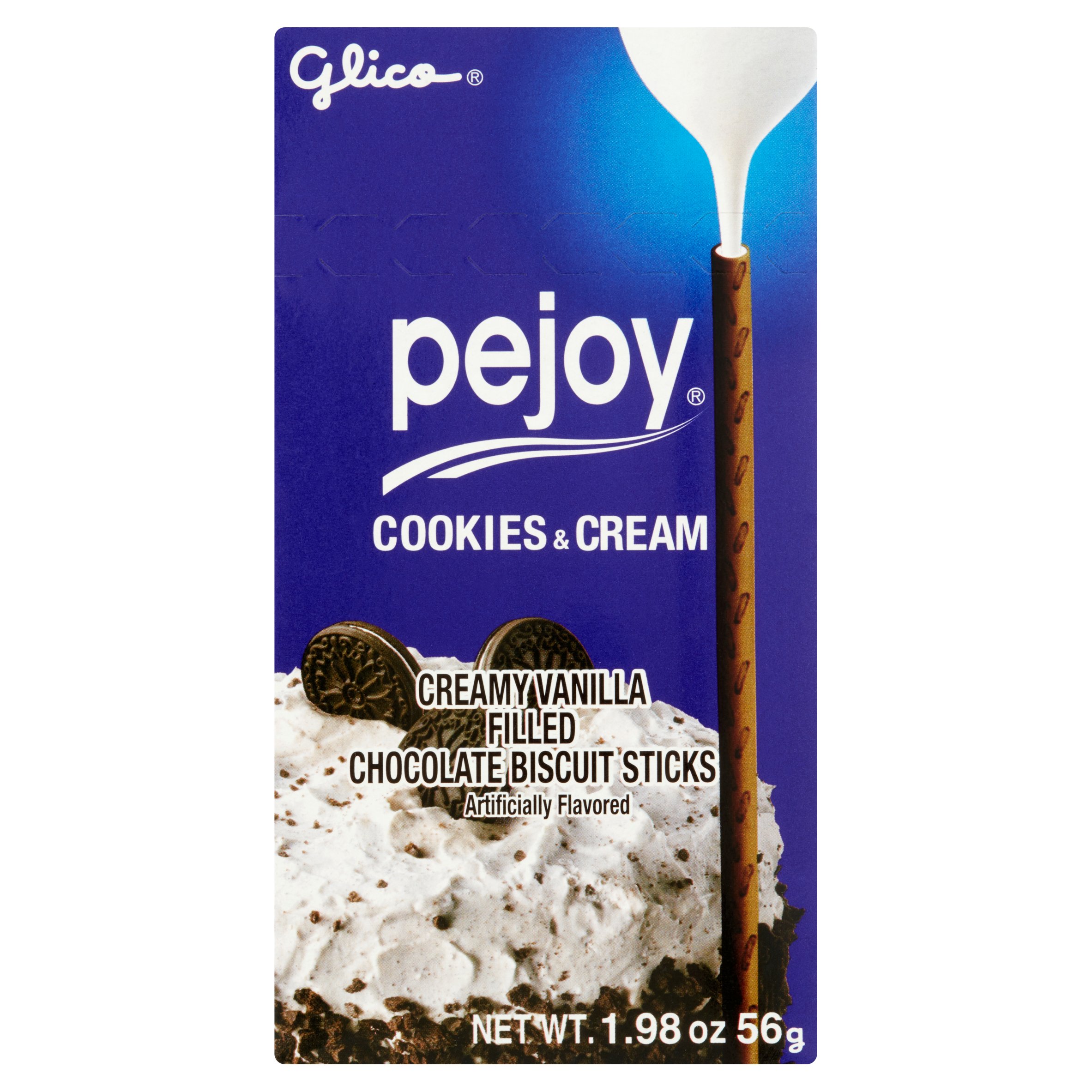 GLICO, PEJOY, CHOCOLATE BISCUIT STICKS, COOKIES & CREAM, CREAMY VANILLA, CREAMY VANILLA