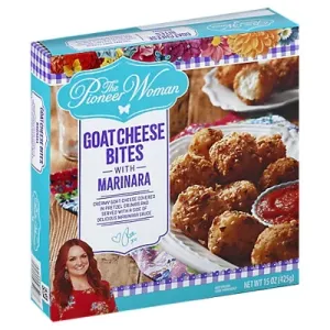 Goat Cheese Bites (Goat Cheese (Pasteurized Goat Milk, Salt, Cheese Cultures, Enzymes), Water, Pretzel Breader (Pretzel Pieces (Enriched Wheat Flour (Wheat Flour, Niacin, Iron, Thiamine Mononitrate, Riboflavin, Folic Acid), Water, Yeast, Soda), Enriched Bleached Wheat Flour (Wheat Flour, Niacin, Reduced Iron, Thiamine Mononitrate, Riboflavin, Folic Acid), Wheat Starch, Salt, Soybean Oil, Dried Yeast, Yeast Extract, Natural Flavor, Sugar), Seasoned Batter (Yellow Corn Flour, Enriched Flour (Wheat Flour, Niacin, Reduced Iron, Thiamine Mononitrate, Riboflavin, Folic Acid), Modified Corn Starch, Iodized Salt, Whey (Milk), Leavening (Sodium Acid Pyrophosphate, Sodium Bicarbonate), Sodium Alginate, Soy Flour, Nonfat Milk, Oleoresin Paprika, Natural Flavor, Eggs), Predust (Bleached Wheat Flour, Whey, Dextrose, Soybean Oil), Soybean Oil, Starch Blend (Wheat Flour, Methylcellulose, Sodium Alginate, And Sodium Tripolyphosphate), Dried Parsley), Marinara Sauce (Water, Tomato Paste, Parmesan Cheese (Pasteurized Milk, Cultures, Salt, Enzymes), Sugar, Salt, Extra Virgin Olive Oil, Modified Corn Starch, Soybean Oil, Spices, Dehydrated Onion, Garlic Powder, Paprika Extract, Xanthan Gum), Contains Milk, Wheat, Egg, Soy