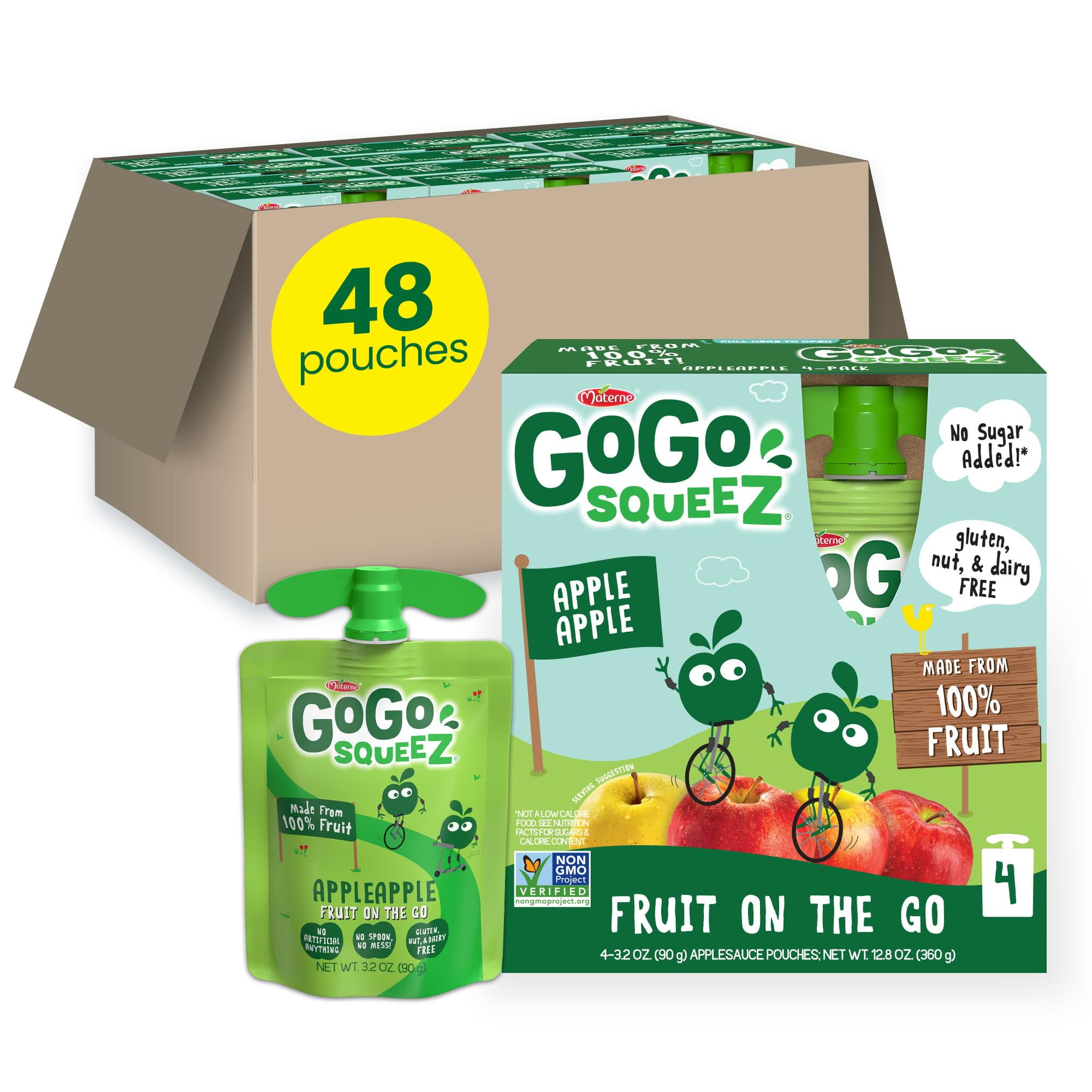 GoGo squeeZ Applesauce and Fruit Puree, Apple Apple, 3.2 oz (Pack of 48), Unsweetened Fruit Snacks for Kids, Gluten Free, Nut Free and Dairy Free, Recloseable Cap, BPA Free Pouches