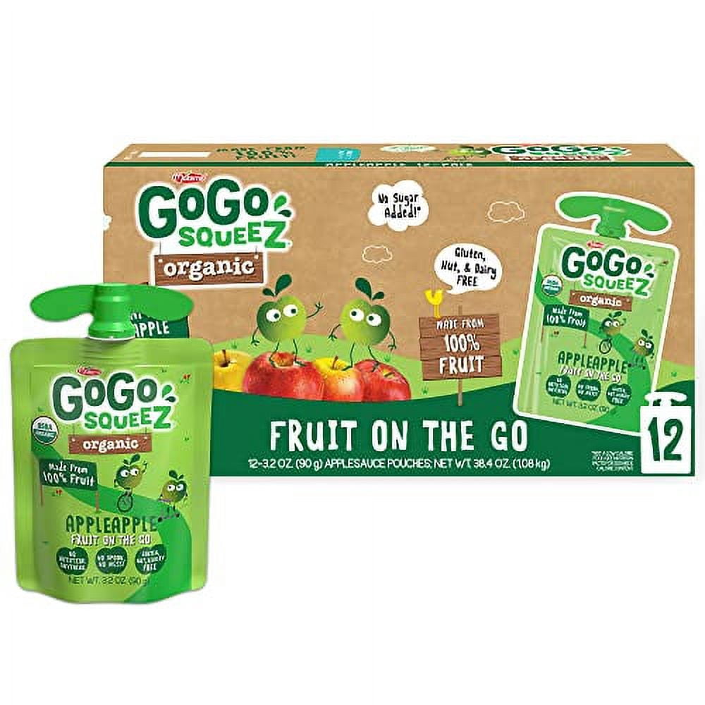 GoGo squeeZ Fruit on the Go Organic, Apple Apple, 3.2 oz (Pack of 12), Unsweetened Organic Fruit Snacks for Kids, Gluten Free, Nut Free and Dairy Free, Recloseable Cap, BPA Free Pouches