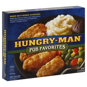Cooked Beer Battered White Meat Chicken Strip Shaped Patties (Cooked White Meat Chicken, Water, Enriched Wheat Flour (Wheat Flour, Niacin, Reduced Iron, Thiamine Mononitrate, Riboflavin, Folic Acid), Vegetable Oil (Partially Hydrogenated Soybean Oil (Tbhq And Citric Acid To Preserve Freshness)), Mechanically Separated Chicken, Chicken Skins, Modified Food Starch, Beer (Water, Malt, Hops, Yeast), Soy Protein Concentrate, Salt, Corn Masa Flour (Trace Of Lime), Sodium Phosphates, Flavor (Maltodextrin, Yeast Extract, Natural Flavor, Potato Maltodextrin, Spices), Sodium Bicarbonate (Hydrogenated Vegetable Oil), Monocalcium Phosphate Monohydrate (Hydrogenated Vegetable Oil), Natural Flavors, Spice Extract, Isolated Oat Product, Onion Powder, Xanthan And Guar Gums, Dextrose), Mashed Potatoes (Water, Dehydrated Potato Flakes (Potatoes, Mono And Diglycerides, Sodium Acid Pyrophosphate, Citric Acid), Seasoning Sauce (Vegetable Oil (Partially Hydrogenated Soybean Oil (Tbhq And Citric Acid To Preserve Freshness)), Water, Mono And Diglycerides With Bht And Citric Acid To Protect Flavor, Beta Carotene For Color (Corn Oil, Dl-alpha-tocopherol)), Contains 2% Or Less Of: Salt, Dried Dairy Blend (Whey, Calcium Caseinate)), Mixed Vegetables (Carrots, Corn, Cut Green Beans), Brownie (Sugar, Water, Enriched Wheat Flour (Wheat Flour, Niacin, Reduced Iron, Thiamine Mononitrate, Riboflavin, Folic Acid), Vegetable Oil (Partially Hydrogenated Soybean Oil (Tbhq And Citric Acid To Preserve Freshness)), Cocoa, Eggs, Seasoning Sauce (Vegetable Oil (Partially Hydrogenated Soybean Oil (Tbhq And Citric Acid To Preserve Freshness)), Water, Mono And Diglycerides With Bht And Citric Acid To Protect Flavor, Beta Carotene For Color (Corn Oil, Dl-alpha-tocopherol)), Acacia And Xanthan Gums, Sodium Bicarbonate (Hydrogenated Vegetable Oil), Salt, Natural And Artificial Flavor (Water, Propylene Glycol, Ethanol, Natural And Artificial Flavor, Caramel Color, Vanilla Extractives)), Seasoning Sauce (Water, Sugar, Seasoning Sauce (Vegetable Oil (Partially Hydrogenated Soybean Oil (Tbhq And Citric Acid To Preserve Freshness)), Water, Mono And Diglycerides With Bht And Citric Acid To Protect Flavor, Beta Carotene For Color (Corn Oil, Dl-alphatocopherol)), Salt, Vegetable Oil (Partially Hydrogenated Soybean Oil (Tbhq And Citric Acid To Preserve Freshness))), Contains 2% Or Less Of: Seasoning Sauce (Vegetable Oil (Partially Hydrogenated Soybean Oil (Tbhq And Citric Acid To Preserve Freshness)), Water, Mono And Diglycerides With Bht And Citric Acid To Protect Flavor, Beta Carotene For Color (Corn Oil, Dl-alpha-tocopherol))