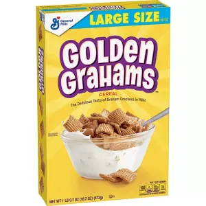 Lightly sweet, toasted graham‑style pieces offer a crunchy initial bite that softens in milk. Commonly eaten as a breakfast cereal, snack straight from the box, or as a topping for yogurt and desserts. Some reviewers cite nostalgic flavor, kid appeal, crunch, and occasional complaints about loss of crispness in milk.