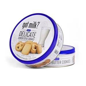 Got Milk? Delicate Traditional Danish Style Butter Cookies in 12 Oz. Gift Tin