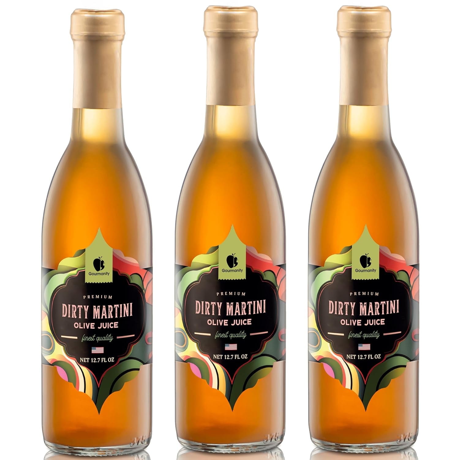 Gourmanity Olive Juice for Dirty Martinis, Premium Olive Brine an Ideal Martini Mix, 12oz Bottle (Pack Of 3)