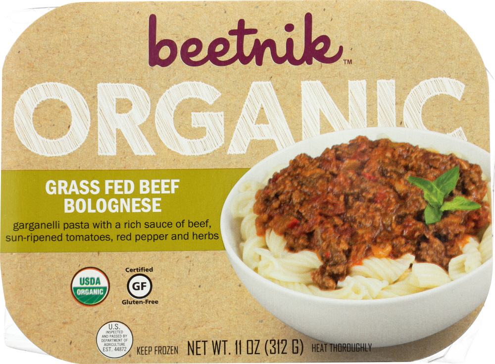 ORGANIC GLUTEN FREE PASTA (ORGANIC CORNSTARCH, ORGANIC EGG, ORGANIC TAPIOCA FLOUR, ORGANIC WHITE RICE FLOUR, WATER, ORGANIC BROWN RICE FLOUR, ORGANIC NON FAT MILK POWDER, ORGANIC POTATO FLOUR, XANTHAN GUM), ORGANIC GRASS FED BEEF, WATER, ORGANIC TOMATOES (ORGANIC TOMATOES, TOMATO JUICE, SEA SALT), ORGANIC ONIONS, ORGANIC TOMATO PASTE, ORGANIC RED BELL PEPPERS, ORGANIC GARLIC, SEA SALT, ORGANIC OREGANO, ORGANIC BASIL, ORGANIC RED PEPPERS, ORGANIC GROUND BLACK PEPPER