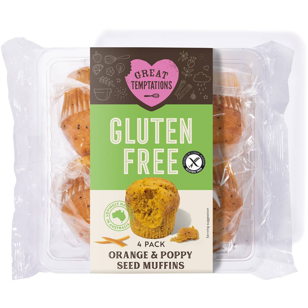 Great Temptations Gluten Free Orange & Poppy Seed Muffins 4 pack