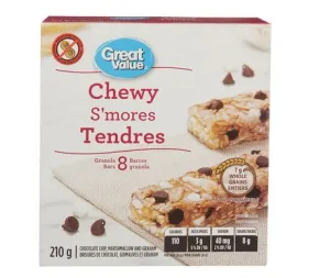 Granola (Whole Rolled Oats, Wheat Flakes, Sugar, Canola Oil, Fancy Molasses, Glucose, Honey, Salt, Soy Lecithin), Glucose, Crisp Rice (Rice Flour, Sugar, Calcium Carbonate, Salt), Chocolate Chips (Sugar, Chocolate Liquor, Cocoa Butter, Milk , Soy Lecithin, Salt, Flavour), Dehydrated Marshmallow (Sugar, Glucose, Modified Corn Starch, Gelatin, Flavour), Glycerine, Graham Cookie Crumbs (Enriched Wheat Flour, Sugar, Graham Flour, Canola Oil, Fancy Molasses, Honey, Salt, Soy Lecithin, Sodium Bicarbonate, Baking Powder, Flavour), Canola Oil, Dried Unsweetened Coconut, Fructose, Honey, Salt, Nut, Soy Lecithin, Ascorbic Acid, Flavour,contains: Milk, Soy, Wheat, Oats,may Contain: Eggs