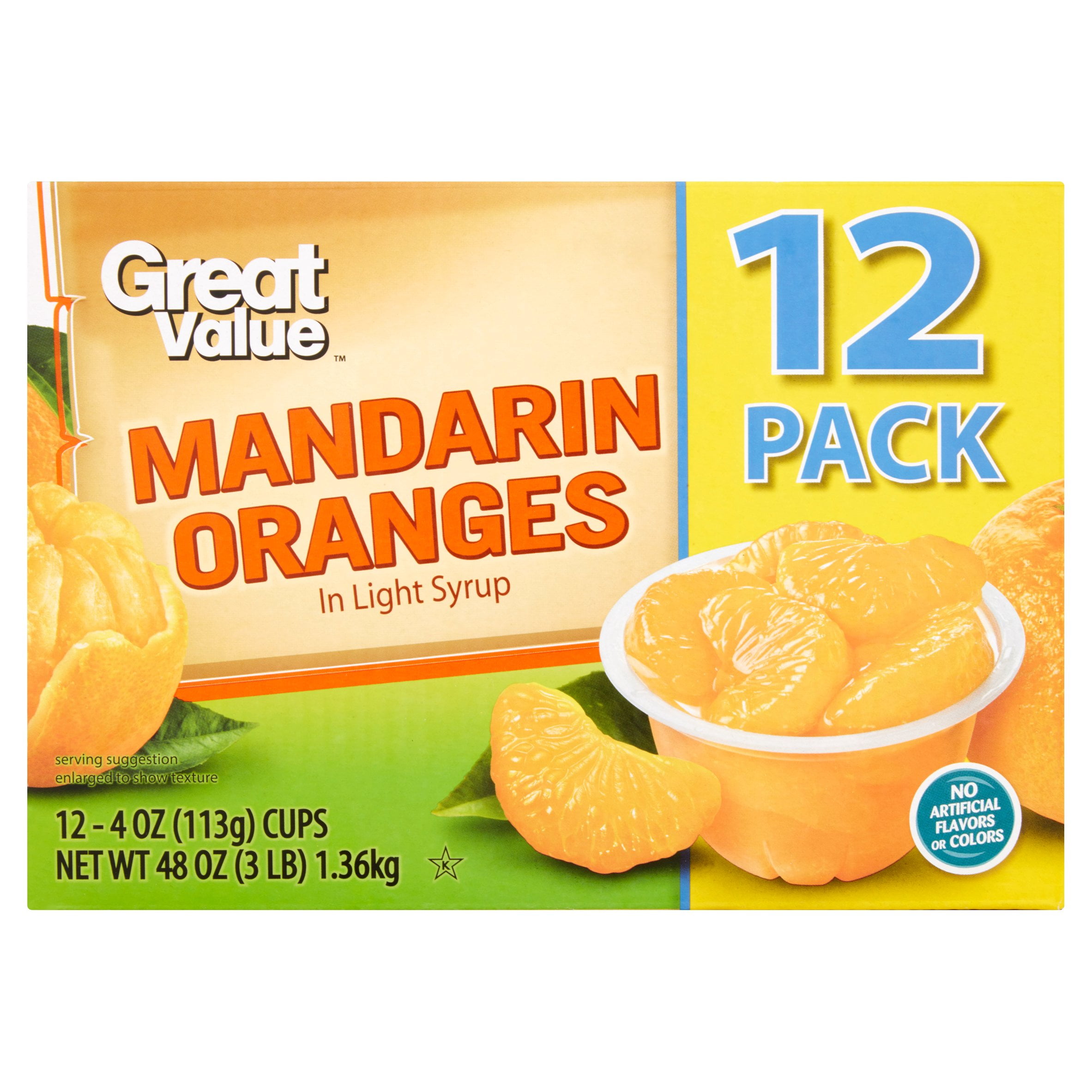 Great Value Mandarin Oranges in Light Syrup, 4 oz, 12 pack