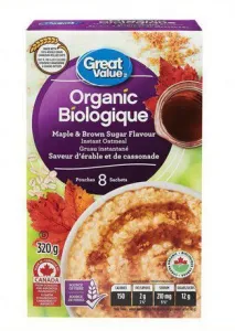 Great Value Maple and Brown Sugar Flavour Organic Instant Oatmeal