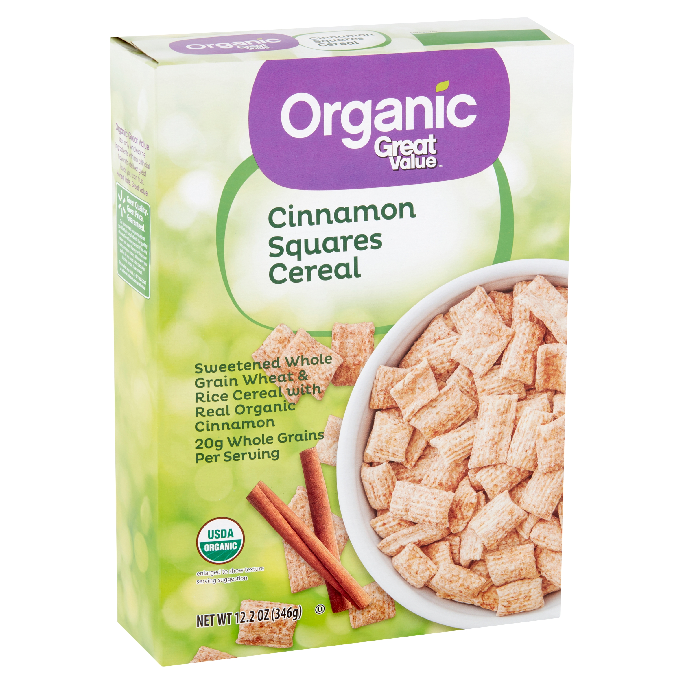 Great Value Organic Cinnamon Squares Cereal, 12.2 oz