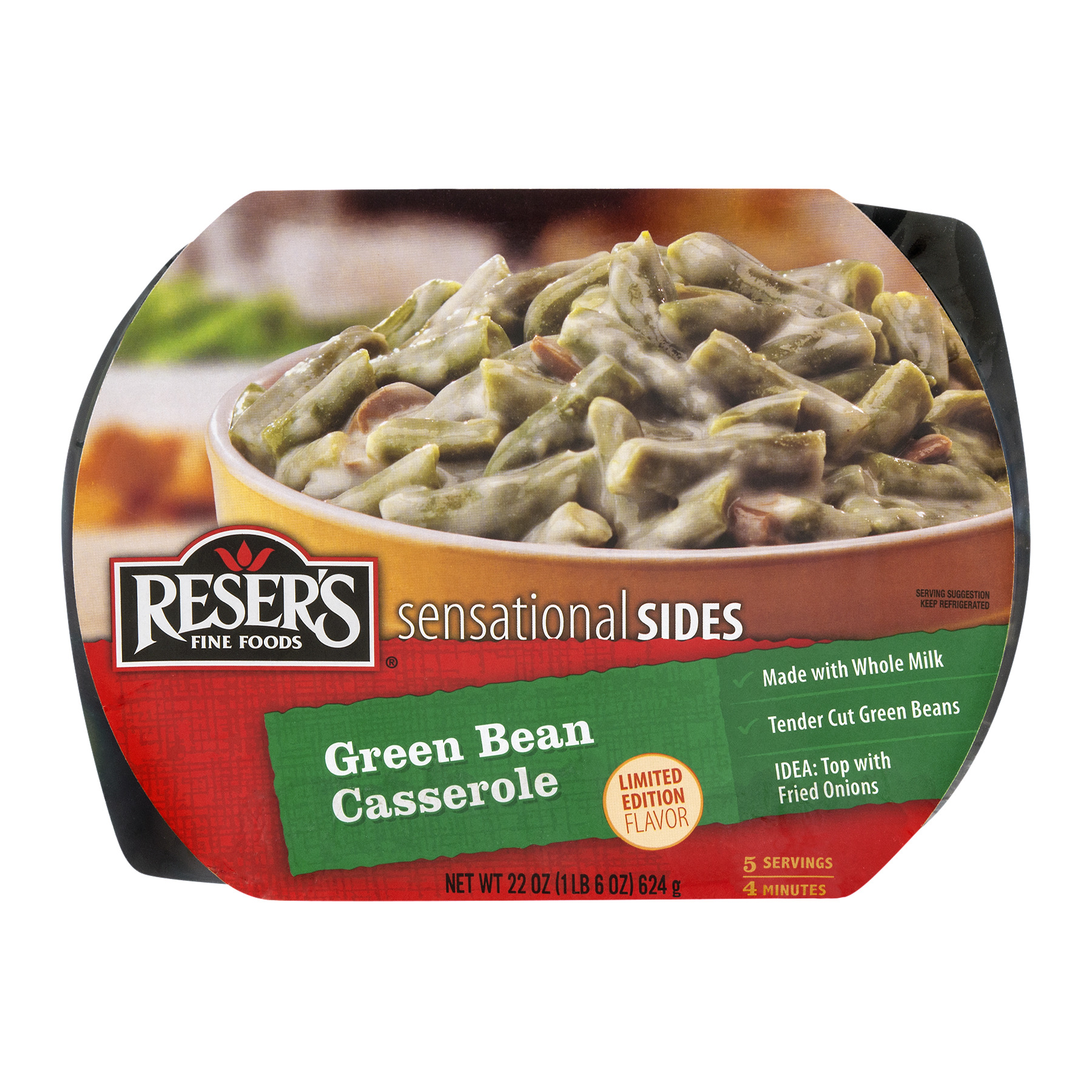 GREEN BEANS, WHOLE MILK, WATER, CREAM OF MUSHROOM SOUP SEASONING (SPRAY DRIED SHORTENING [COCONUT OIL, CORN SYRUP SOLIDS, SODIUM CASEINATE, MONO & DIGLYCERIDES AND SODIUM SILICOALUMINATE], MODIFIED FOOD STARCH, WHEAT FLOUR, MALTODEXTRIN, SALT, DEHYDRATED MUSHROOM, SUGAR, NATURAL BUTTER FLAVOR [MILK], ONION POWDER, MUSHROOM FLAVOR, XANTHAN GUM, SPICE), MUSHROOMS (MUSHROOMS, WATER, SALT), MODIFIED CORN STARCH, SOY SAUCE (WATER, WHEAT, SOYBEANS, SALT, SODIUM BENZOATE AS A PRESERVATIVE), FRIED ONION POWDER (ONION POWDER, SALT, RICE FLOUR, SUGAR, DEXTROSE, MEDIUM CHAIN TRIGLYCERIDE), SALT, NATURAL FLAVORING (YEAST EXTRACT, SALT), DEHYDRATED ROASTED GARLIC, SUGAR, POTASSIUM SORBATE (PRESERVATIVE), SODIUM BENZOATE (PRESERVATIVE).