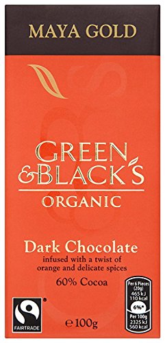 Ingredients: Cocoa mass #, raw cane sugar #, cocoa butter #, emulsifier (SOYA lecithin #), Natural orange cinnamon flavouring with other natural flavourings, vanilla extract #.# =Certified Organic ORGANIC CHOCOLATE: MINIMUM COCOA SOLIDS 60% Cocoa, Sugar, Vanilla: traded in compliance with Fairtrade Standards, total 99%. Visit www.info.fairtrade.netFairtrade means fairer trading conditions and opportunities for producers in developing countries to invest in their businesses and communities for a sustainable future. MAY CONTAIN NUTS, MILK.