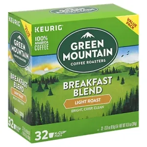 Green Mountain Coffee Breakfast Blend Keurig Single-Serve K-Cup Pods, Light Roast Coffee, 32 Count