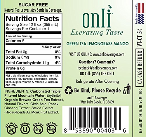 CARBONATED TRIPLE FILTERED MOUNTAIN WATER, ERYTHRITOL, ORGANIC BREWED GREEN TEA EXTRACT, NATURAL FLAVORS, CITRIC ACID, PANAX GINSENG EXTRACT, STEVIA EXTRACT (REBAUDIOSIDE A), MONK FRUIT EXTRACT.