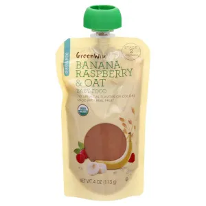 GreenWise Baby Food, Organic, Banana, Raspberry & Oat, Stage 2 (6 Months+)