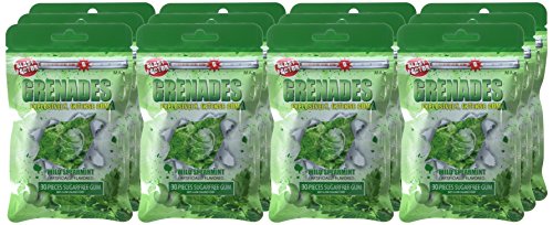 Grenades Explosively Strong Gum, Wild Spearmint, 30 Count (Pack of 12)