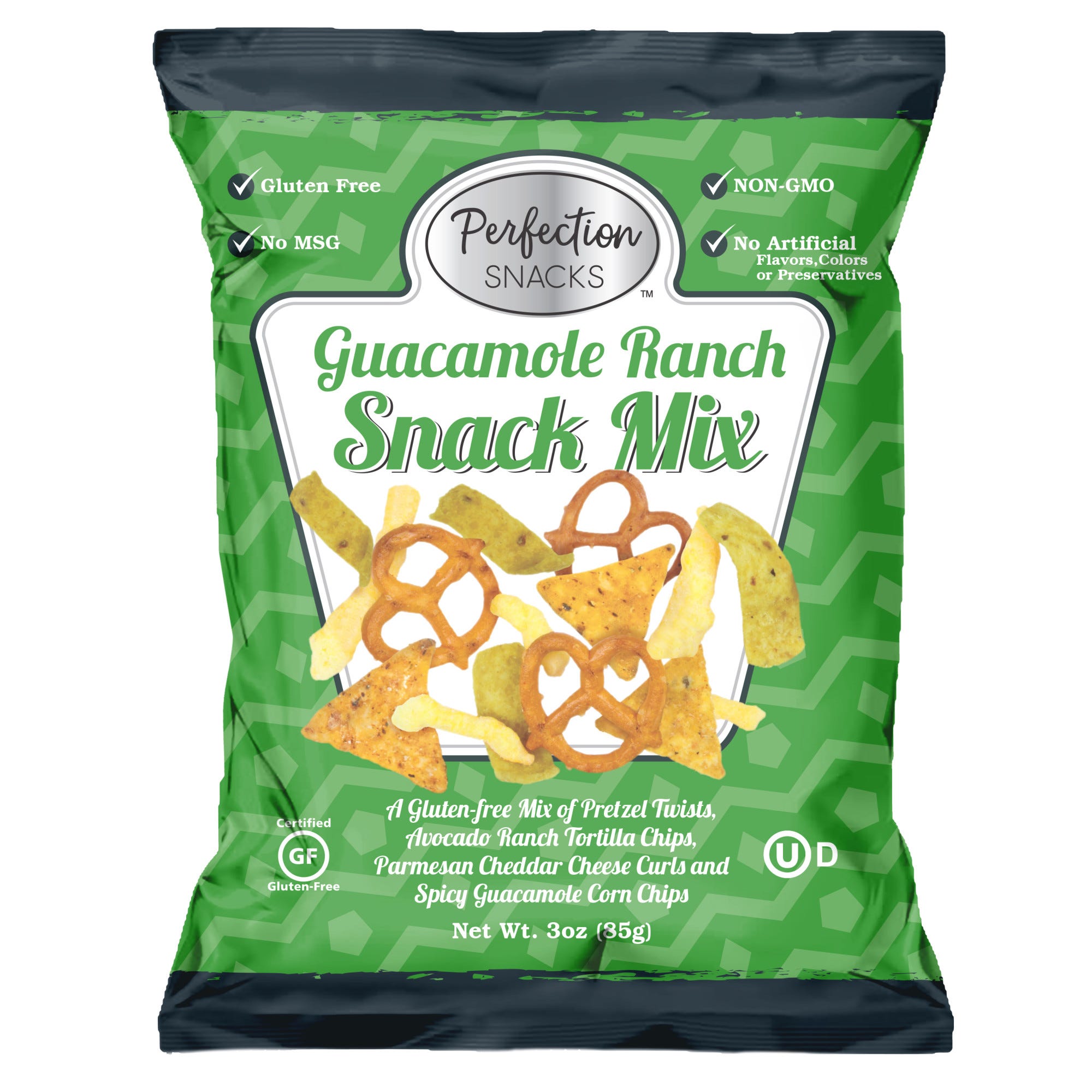 GUACAMOLE RANCH SNACK MIX OF PRETZEL TWISTS, AVOCADO RANCH TORTILLA CHIPS, PARMESAN CHEDDAR CHEESE CURLS AND SPICY GUACAMOLE CORN CHIPS, GUACAMOLE RANCH