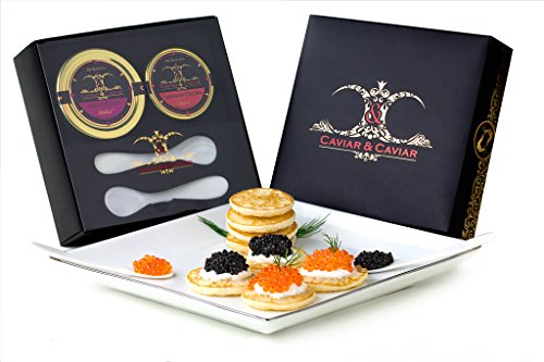 GUARANTEED OVERNIGHT! C&C Gourmet Caviar Gift Basket - 1oz Siberian Osetra - 2oz Fresh French TroutFREE 2 Mother of Pearl Spoons
