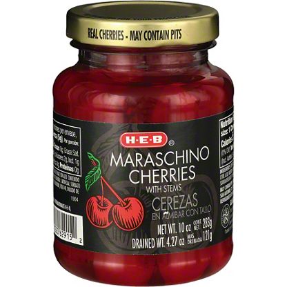 H-E-B MARASCHINO CHERRIES WITH STEMS, 10 OZ