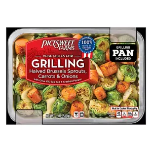 Pre-halved vegetable mix offers a smoky, caramelized flavor profile with crisp-tender interior and lightly charred edges after grilling. Common uses include side dishes, bowl or sandwich additions, and meal prep. Customer reviews mention convenience and consistent cut, while noting occasional uneven cooking and variable browning across batches but generally acceptable.