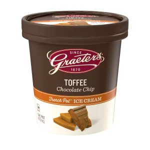 CREAM, MILK, CANE SUGAR, MILK CHOCOLATE CHIPS (SUGAR, MILK, COCOA BUTTER, CHOCOLATE LIQUOR PROCESSED WITH ALKALI, SOY LECITHIN, VANILLA), SKIM MILK, EGGS, TOFFEE (SUGAR, PALM OIL, BUTTER, ALMONDS (ROASTED IN COCOA BUTTER AND/OR SUNFLOWER OIL), SALT, ARTIFICIAL FLAVOR, SOY LECITHIN), VANILLA EXTRACT, CAROB BEAN GUM, GUAR GUM.