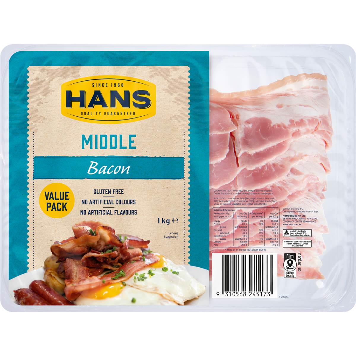 Hans Middle Bacon 1kg