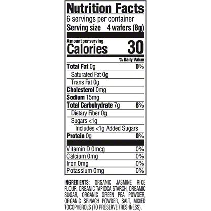 Organic Jasmine Rice Flour, Organic Tapioca Starch, Organic Sugar, Organic Green Pea Powder, Organic Spinach Powder, Salt, Mixed Tocopherols (To Preserve Freshness).