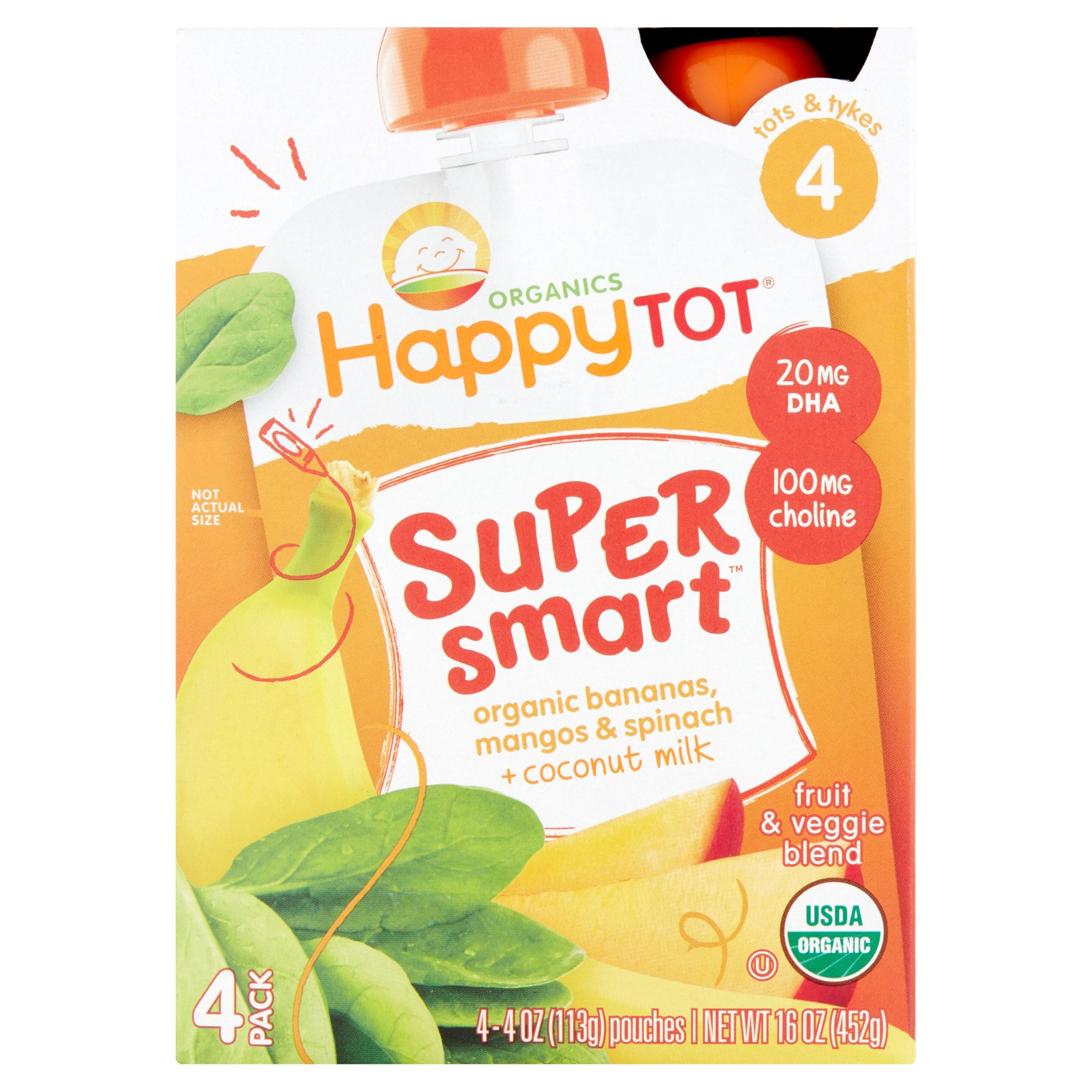 Happy Tot Organics Super Smart Fruit & Veggie Blend Stage 4 Tots & Tykes, 4 oz, 4 Count